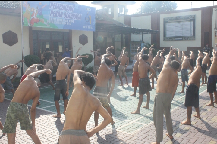Pasuruan – Dalam upaya menjaga kesehatan fisik dan mental, Rumah Tahanan Negara (Rutan) Kelas IIB Bangil melaksanakan kegiatan senam pagi bagi warga binaan Blok Mapenaling. Kegiatan yang berlangsung di halaman utama rutan melibatkan seluruh warga binaan yang tergabung dalam program pembinaan awal. Senam tersebut dipandu oleh salah satu warga binaan dan diawasi langsung pegawai staf pembinaan Rutan Bangil.