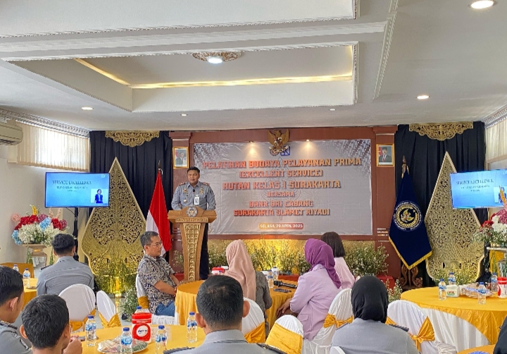 Surakarta – Rutan Kelas I Surakarta menggelar pelatihan bertajuk _Excellent Service_ sebagai upaya meningkatkan budaya pelayanan prima di lingkungan kerja. Kegiatan ini dilaksanakan dengan menggandeng Bank Rakyat Indonesia (BRI) cabang Surakarta sebagai mitra pelatihan, bertempat di aula Baharudin Lopa Rutan Surakarta, Selasa (29/04).