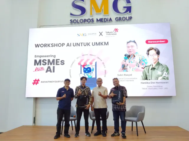 Acara dibuka oleh CEO Solopos Media Group Arif Budisusilo sebagai pelaksana kegiatan. Dalam sambutannya, Arif menyatakan harapannya agar pelatihan AI bisa mendorong pelaku UMKM dapat memanfaatkan teknologi untuk mengembangkan bisnisnya, terutama di sektor pemasaran. “Saya berharap ke depannya para pelaku UMKM dapat menggunakan teknologi, khususnya Artificial Intelligence (AI) agar bisa memberikan kontribusi yang lebih besar bagi Kota Solo dan Indonesia,” ujarnya.