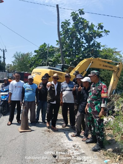 Bekasi Pebayuran – Dalam upaya meningkatkan fungsi saluran irigasi dan mencegah potensi banjir, Babinsa Desa Karangreja Koramil 11/Pebayuran, Peltu Yaya Udaya, melaksanakan pendampingan kegiatan normalisasi saluran pembuangan kali di Kp. Bakung RT 10 RW 06, Desa Karangreja, Kecamatan Pebayuran, Kabupaten Bekasi, Kamis (7/8/2025).