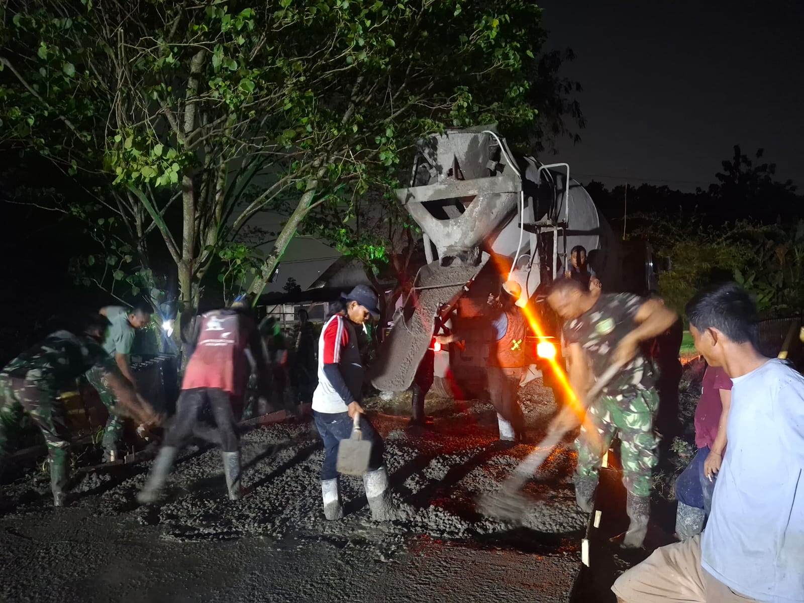 Bekasi Nagacipta – Hingga malam hari, Satgas TMMD Ke-126 Kodim 0509/Kabupaten Bekasi terus bekerja keras menyelesaikan sasaran ke-7 berupa pengecoran jalan lingkungan (jaling) di Kampung Cempaka RT 04/RW 02, Desa Nagacipta, Kecamatan Serang Baru, Sabtu (11/10/2025).