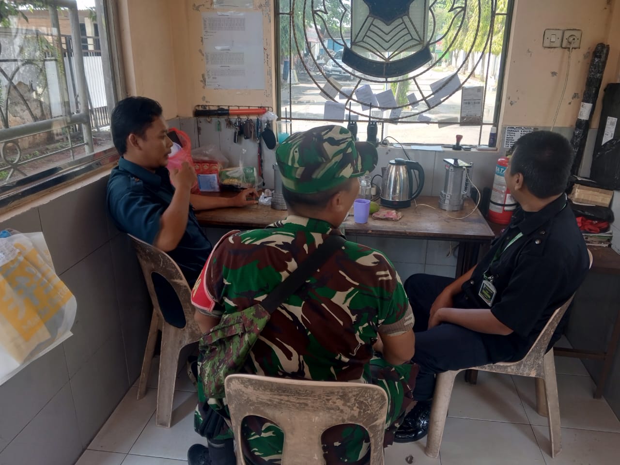 Dalam kesempatan tersebut, Babinsa berkoordinasi dengan petugas keamanan Ponpes, Toni dan Anwar, serta Ketua RW 02 Dedi, membahas situasi keamanan dan ketertiban di sekitar lingkungan pesantren.