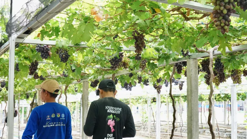 “Perjalanannya panjang dan tidak mudah. Sebelum BPN datang, panen pertama kami selalu gagal. Hujan turun, anggur busuk semua. Setelah dibantu BPN, kami bisa memasang plastik UV untuk melindungi tanaman. Sekarang, panen bisa dua hingga tiga kali setahun,” ujar Saifuddin.
