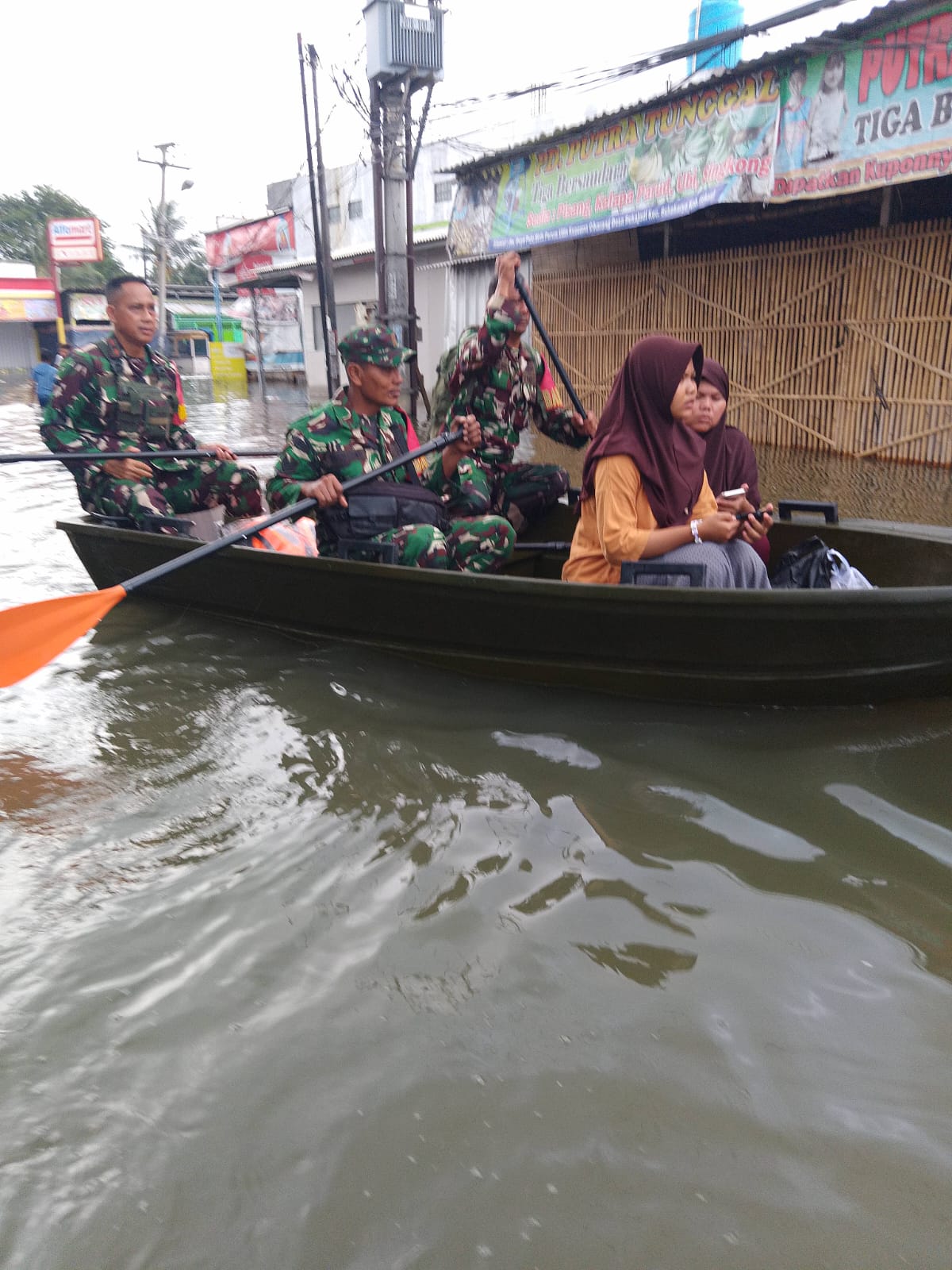 Di tengah kondisi darurat tersebut, Babinsa Koramil 10/Sukatani bersama BPBD dan relawan bergerak cepat melakukan evakuasi warga, terutama anak-anak, lansia, dan ibu hamil. Menggunakan perahu karet dari berbagai instansi, proses evakuasi berlangsung hingga malam hari demi memastikan tidak ada warga yang terjebak di rumahnya.